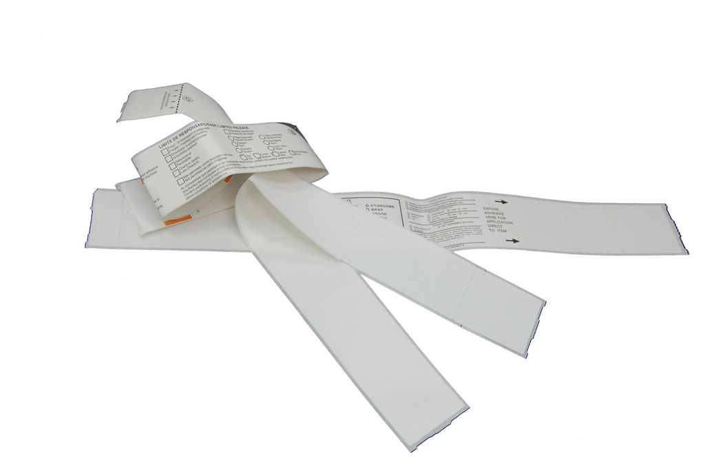 合成熱感貼紙是將珠光紙加上遇熱顯色的熱感材料塗布後,背面再上膠後,即成為防水性佳、質輕耐用、撕不破的合成熱感貼紙。合成熱感貼紙因遇熱則能顯示資料,因此使用時不需要另增添其他耗材。合成熱感貼紙除了基本的防水、防油、耐高溫等需求外,還需具備足夠的強度與影像清晰度。目前多用於航空行李貼條、停車繳費單、醫院腕帶等用途。